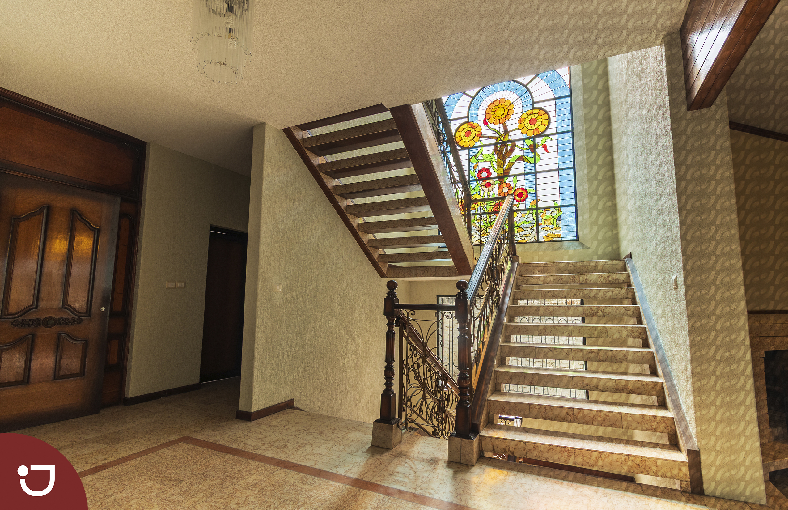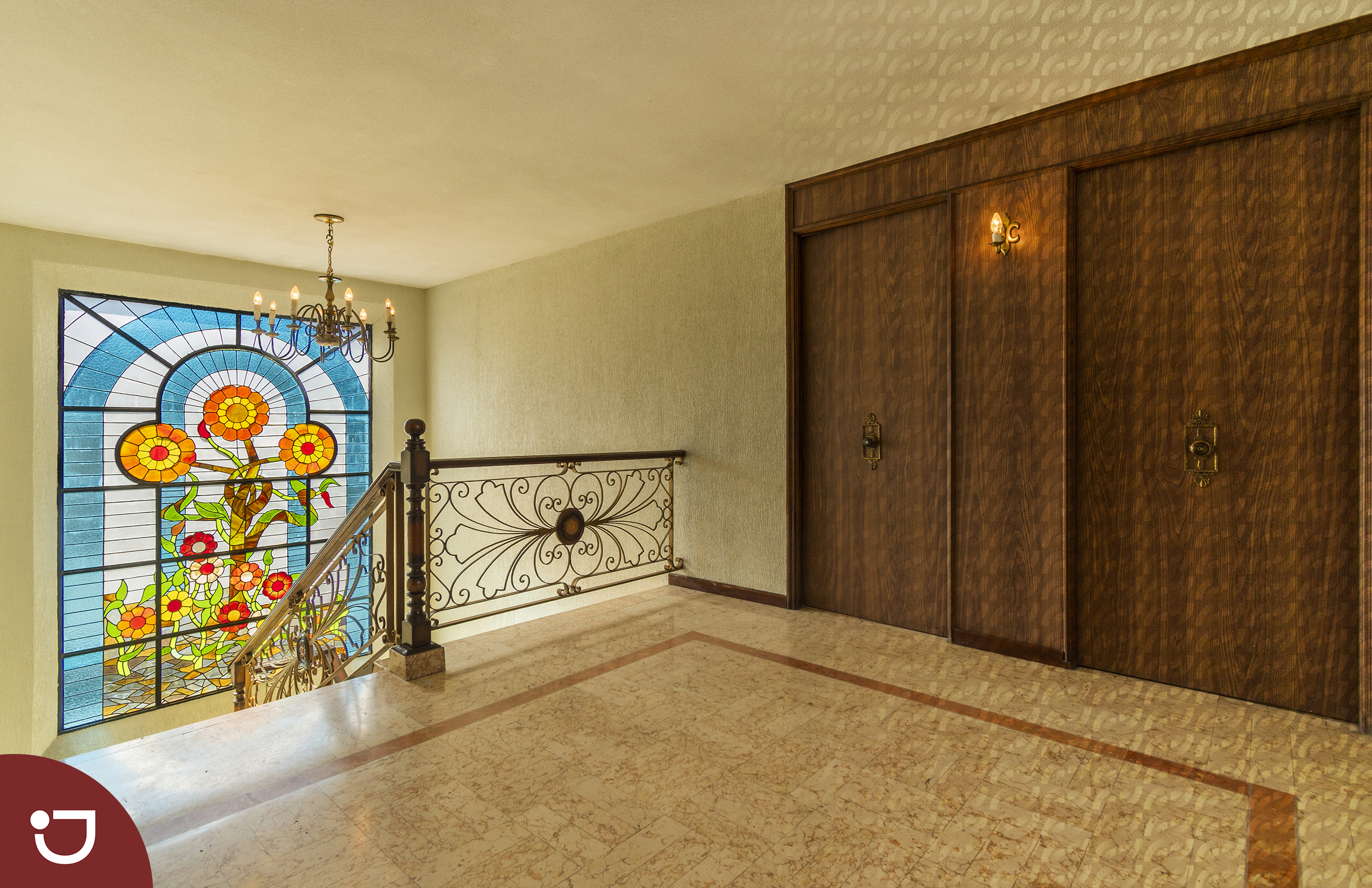🔹 Segundo nivel: 4 amplias recámaras, cada una con baño independiente y clóset. La principal con tina. Todas con vista al jardín. En el área de escaleras, un hermoso vitral que inunda la casa de luz natural y realza su arquitectura.