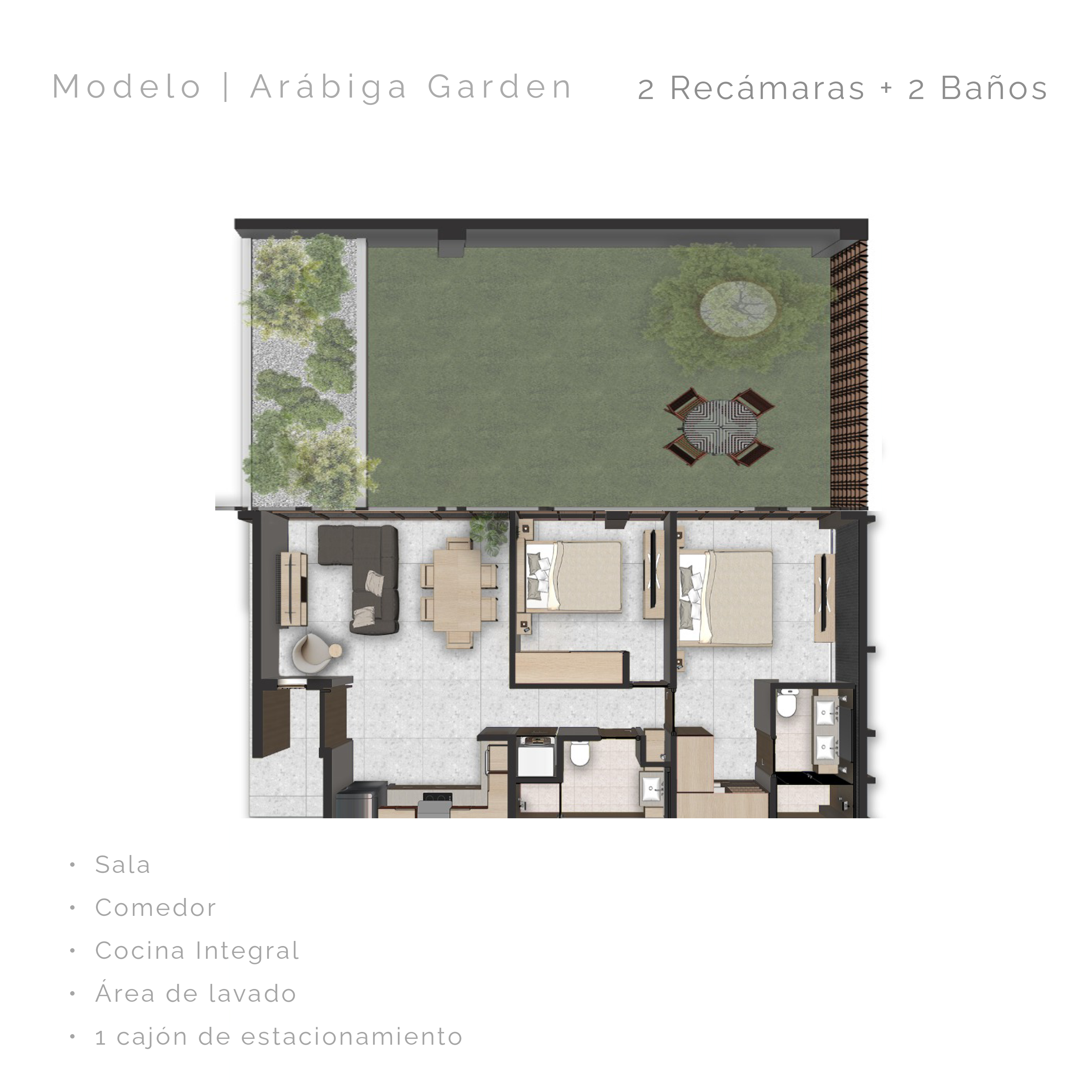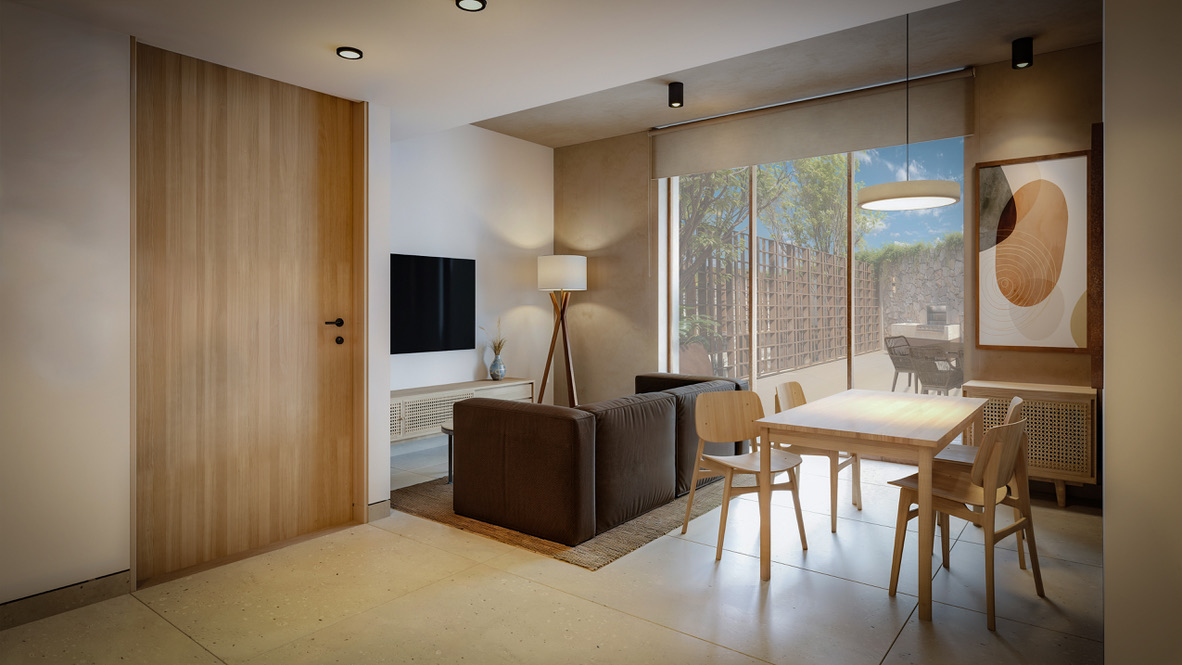 | Descripción | Ubicados en la planta baja, las Garden Residences ofrecen una experiencia residencial fluida, donde el recorrido desde el acceso privado se integra de manera natural con la intimidad de un jardín propio. Aqui, el exterior se convierte en una extension del interior y la luz natural acompaña cada espacio con elegancia. El jardín privado permite disfrutar de un desayuno al aire libre, una tarde junto al asador o una lectura nocturna en un entorno sereno. Este espacio se transforma en una prolongación de tu estilo de vida: un refugio donde la sofisticación se expresa en los silencios, en las vistas abiertas y en la liberta de habitar a tu propio ritmo. |